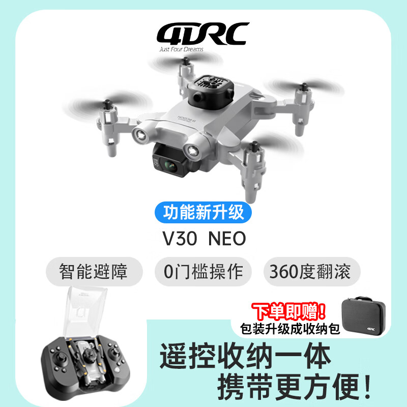旗舰店4DRC非大疆NEO掌上入门无人机航拍智能遥控飞机儿童男孩玩具新年礼物 V30 NEO【无航拍+单模式】智能悬停+自动避障 一块电池(收藏+购物车付款,额外送一块电池)
