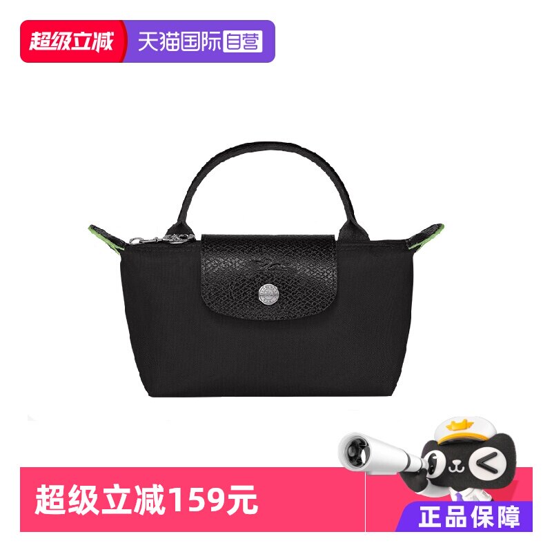 自营【自营】LONGCHAMP/珑骧再生帆布拼牛皮按扣拉链饺子包手提包女款