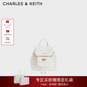 旗舰店CHARLES&KEITH菱格大容量柔软多用背包书包双肩包包女包生日礼物CK2-60151400 Cream奶白色 S