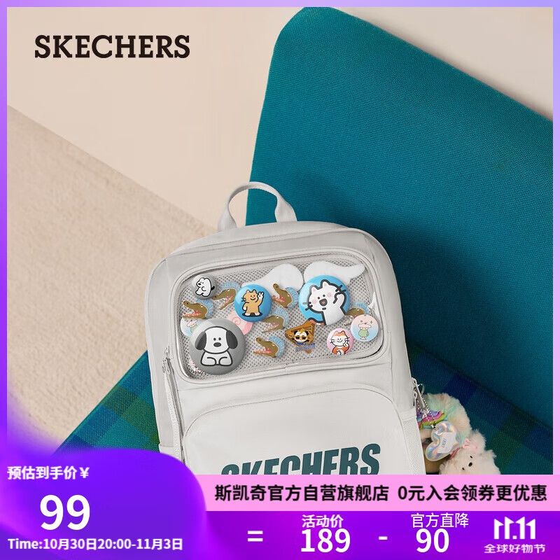 自营斯凯奇(SKECHERS)2025新款男女同款大容量痛包双肩包舒适减负多外袋书包L325U103