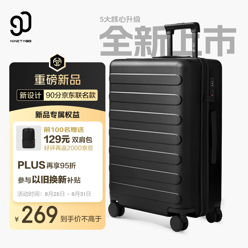 自营90分行李箱20英寸可登机大容量密码旅行PC拉杆箱暗夜黑【京东联名款】