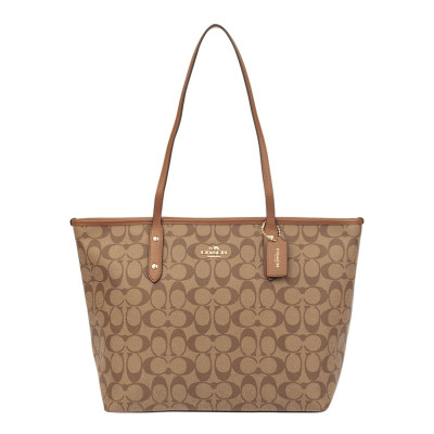 蔻驰(COACH)女包 女士奥莱款经典标志双面老花CITY托特包单肩包金属马车标斜挎包 时尚C纹字母女手提包F58292