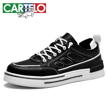 旗舰店卡帝乐鳄鱼男鞋2024春秋季新款休闲皮鞋男士低帮运动板鞋潮流百搭鞋子 黑色 40