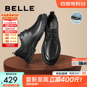 旗舰店百丽男鞋缓震科技真皮正装鞋商场款四季厚底休闲皮鞋7WF01AM3 黑色 42 (260mm)