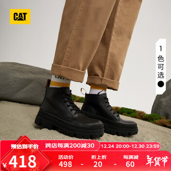 旗舰店CAT卡特靴子男女同款户外休闲牛皮工装靴低靴子 黑色 38