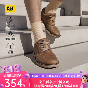 旗舰店CAT卡特休闲皮鞋男士复古工装轻户外软牛皮防滑通勤鞋P725212N3AMC29 浅褐 42