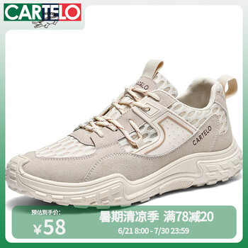 旗舰店卡帝乐鳄鱼男士休闲鞋2024春夏季新款超轻薄运动鞋老爹鞋子百搭潮流网面男鞋 沙色[透气款]QH927 41