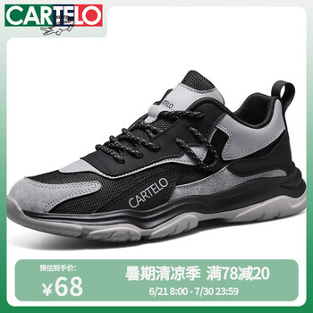 旗舰店卡帝乐鳄鱼男士休闲鞋2024春夏季新款超轻薄运动鞋老爹鞋子百搭潮流网面男鞋 黑灰[透气款]QH8118 41
