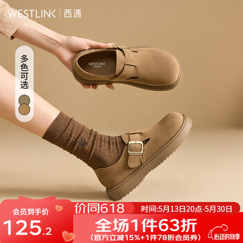 旗舰店西遇厚底勃肯鞋女2024新款冬季软底全包保暖毛毛鞋加厚加绒雪地鞋 卡其色 35