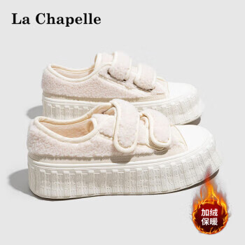 旗舰店拉夏贝尔女鞋厚底冬季加厚保暖魔术贴设计休闲鞋子女百搭软底棉鞋女 米色 38