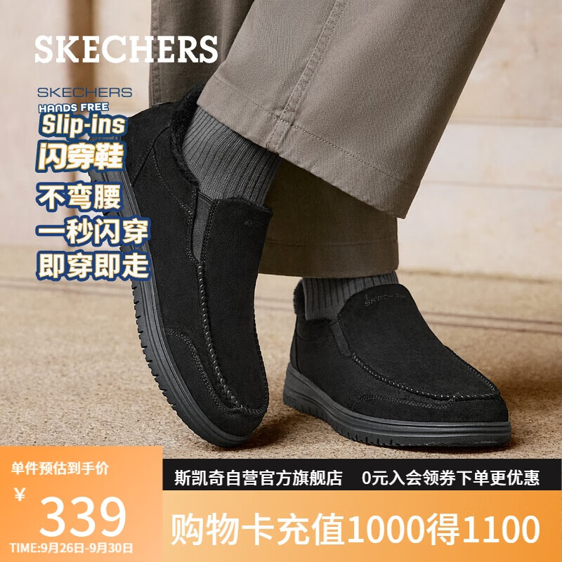 自营斯凯奇(Skechers)闪穿鞋男士2025新款秋季加绒保暖休闲健步鞋一脚蹬乐福鞋205606