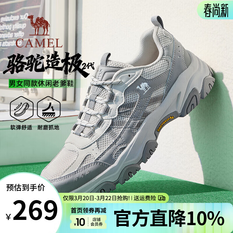 旗舰店骆驼(CAMEL)男鞋造极2代新款户外登山鞋女透气增高情侣徒步休闲运动鞋子男 G16M307001 浅灰 男【夏季透网款】 42