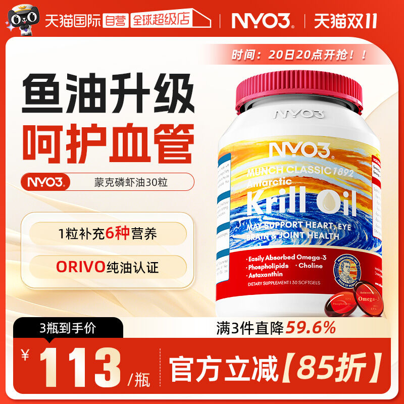 自营【自营】NYO3挪威蒙克磷虾油软胶囊鱼油升级omega-3低密度中老年