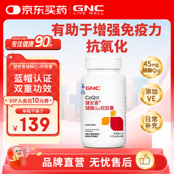 旗舰店GNC健安喜 辅酶Q10软胶囊60粒 有助于增强免疫力 有助于抗氧化 含VE 1瓶(60粒 约60天量)