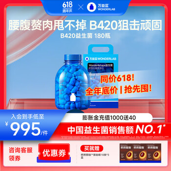 旗舰店万益蓝WonderLab 成人B420益生菌 浅蓝小蓝瓶成人益生菌粉 200亿益生元 【囤货大胖桶】180天享轻盈-180瓶装