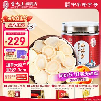 旗舰店雷允上西洋参片加拿大进口西洋参大片花旗参补品人参皂苷泡水父亲节礼物 2-3CM超大片西洋参100g