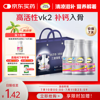 自营钙尔奇铂金液体钙片120粒*3瓶礼盒装钙片女士中老年补钙维生素D维生素k2