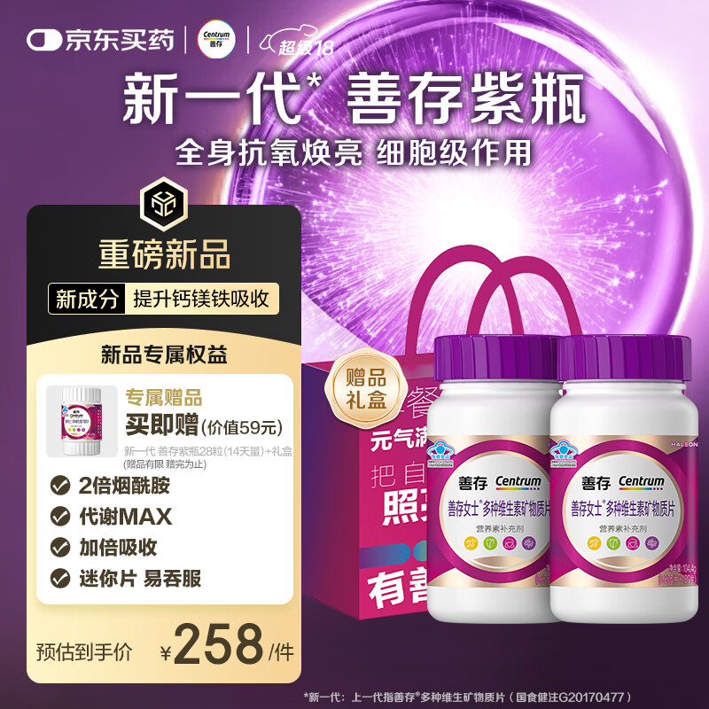 自营善存【新品】女士复合维生素 紫瓶120粒*2 叶酸vk2硒b族b12维dvce