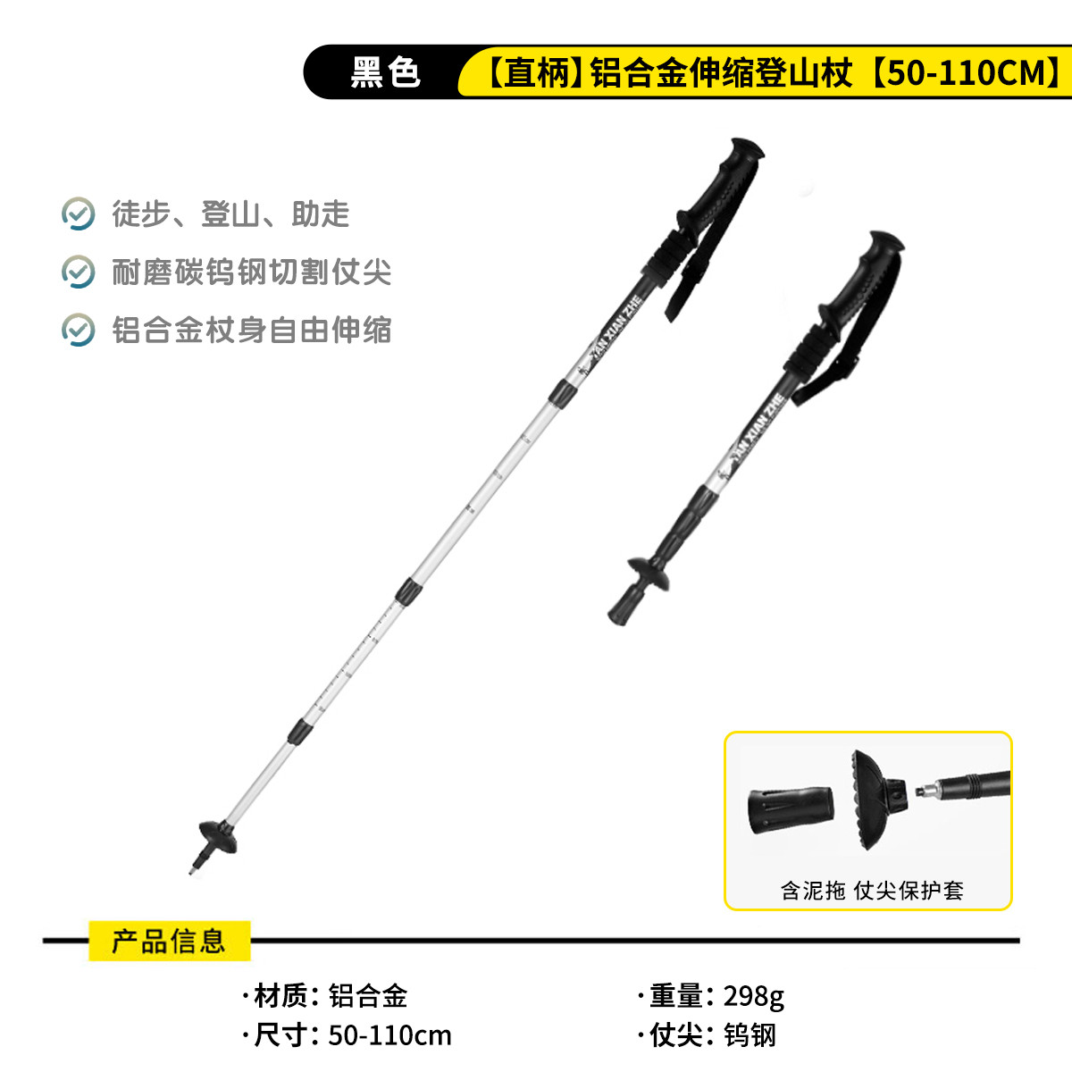 TANXIANZHE 探险者登山杖手杖超轻折叠伸缩直柄拐杖专业户外徒步装备爬山棍