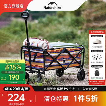 旗舰店NatureHike挪客轻盈露营车便携折叠小推车 户外野餐车野营小拉车拖车营地车 185L /山型砖红