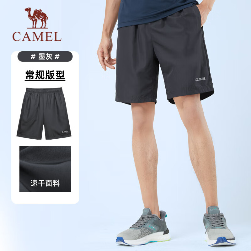 自营骆驼(CAMEL)速干运动短裤男休闲透气梭织五分裤子 J0S2UL8123-2 墨灰 M