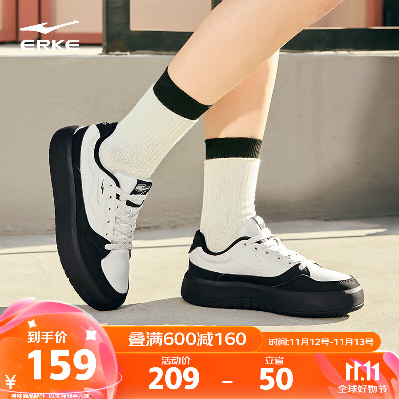 自营鸿星尔克板鞋女子冬季透气厚底轻质小白鞋舒适运动休闲女鞋|元气2.0