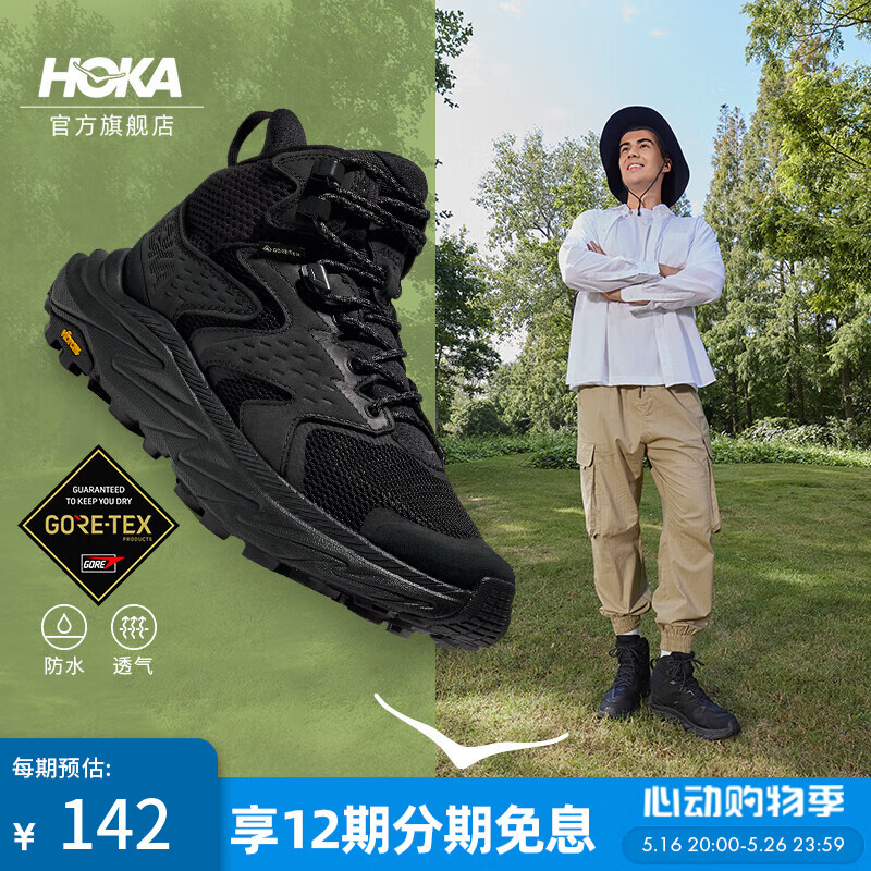 旗舰店HOKA男女款秋季中帮防水户外徒步鞋ANACAPA 2 GTX透气 黑色/黑色-男 42.5