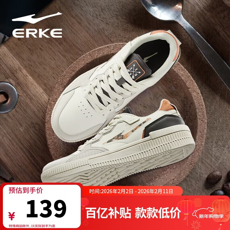 自营鸿星尔克板鞋男秋季透气鞋子男鞋轻便简约软底运动复古休闲鞋小白鞋拿铁