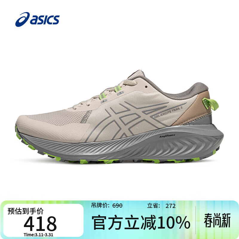自营亚瑟士ASICS男子缓震透气越野跑鞋 GEL-EXCITE TRAIL 2 米色/灰色 41.5