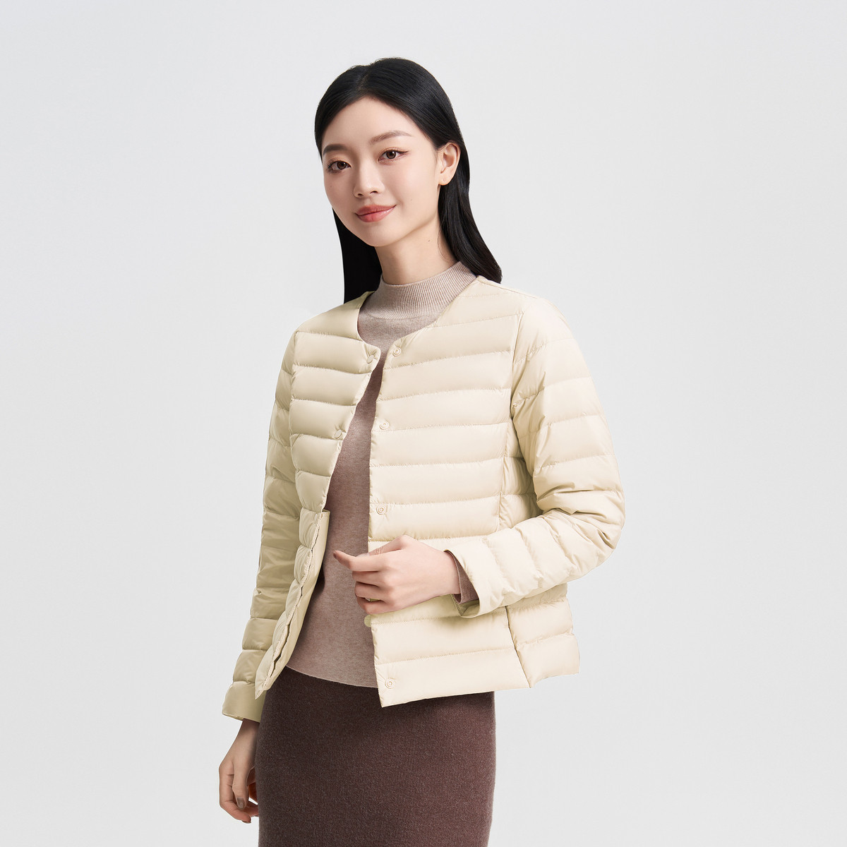 波司登 【25年新款】春季圆领V领居家内胆可叠穿轻薄羽绒服外套女