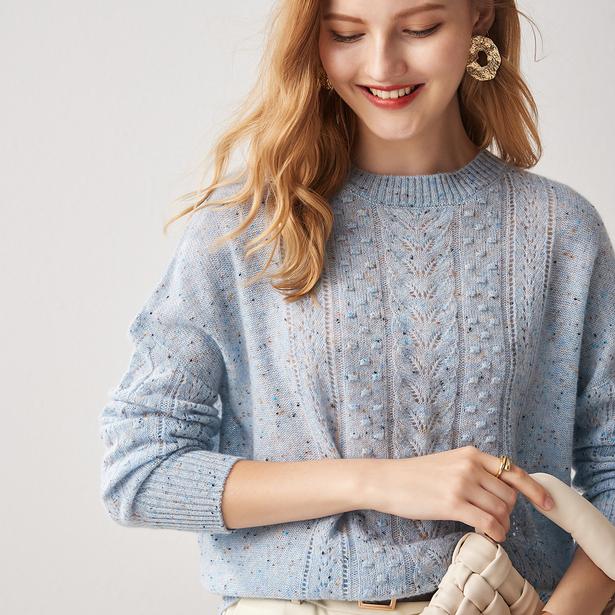 100%山羊绒】秋冬镂空绞花设计淑女宽松气质针织羊绒衫女