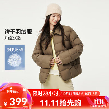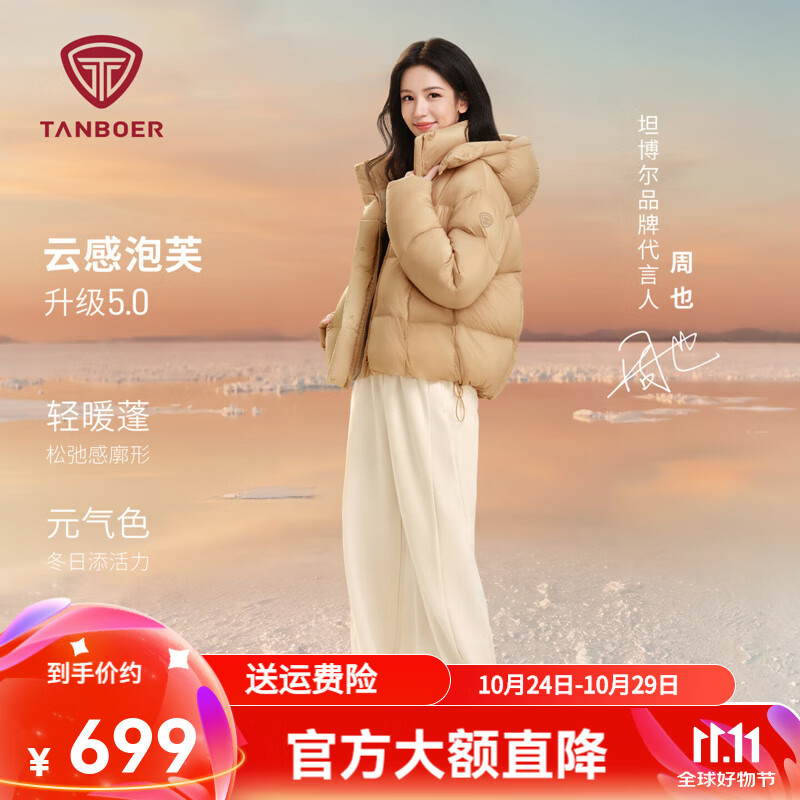 旗舰店坦博尔【周也同款】24新款羽绒服女轻薄短款衬衫领韩版外套TBF330226D 坚果壳色 155/80A
