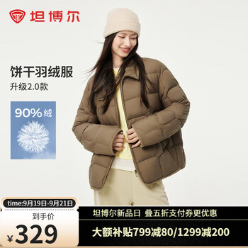 旗舰店坦博尔小红书同款2024新款羽绒服女轻薄短款衬衫领韩版外套TBF330226D 坚果壳色 155/80A