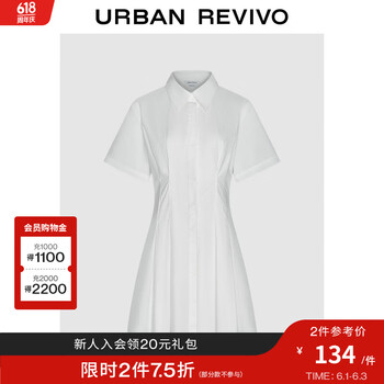 旗舰店UR2024夏季新款女装通勤风压褶修身短袖棉质连衣裙UWU740075 本白 S