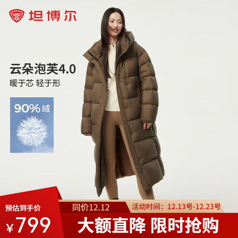 旗舰店坦博尔【高充绒】羽绒服女泡芙长款小个子保暖加厚连帽面包服TBF530836Z 大象咖啡 170/92A
