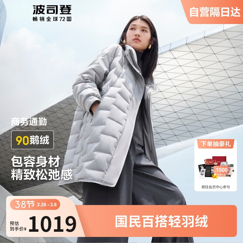 自营波司登秋冬季白鹅绒服女款商务时尚中长款优雅保暖外套