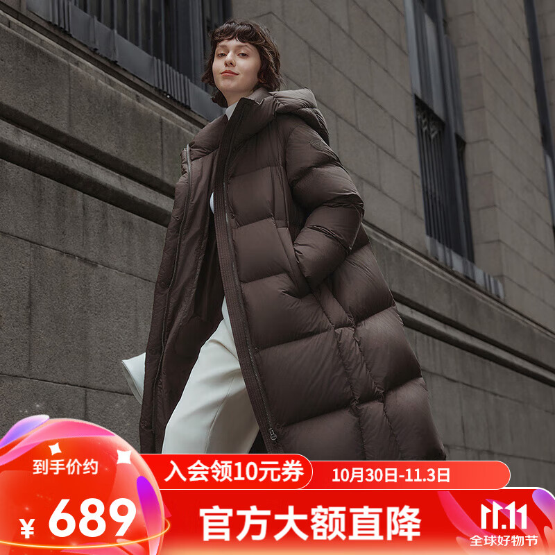 旗舰店鸭鸭长款羽绒服女过膝2025年新款冬季连帽加厚女士时尚收腰显瘦外套 咖色 S