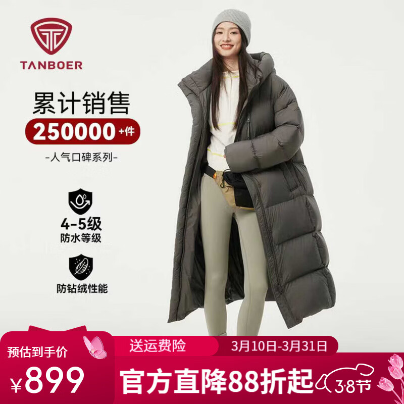 旗舰店坦博尔【热卖爆款】加厚连帽云朵泡芙羽绒服女长款时尚宽松高充绒外套 乌鹊灰 L (170) 建议体重145斤-155斤