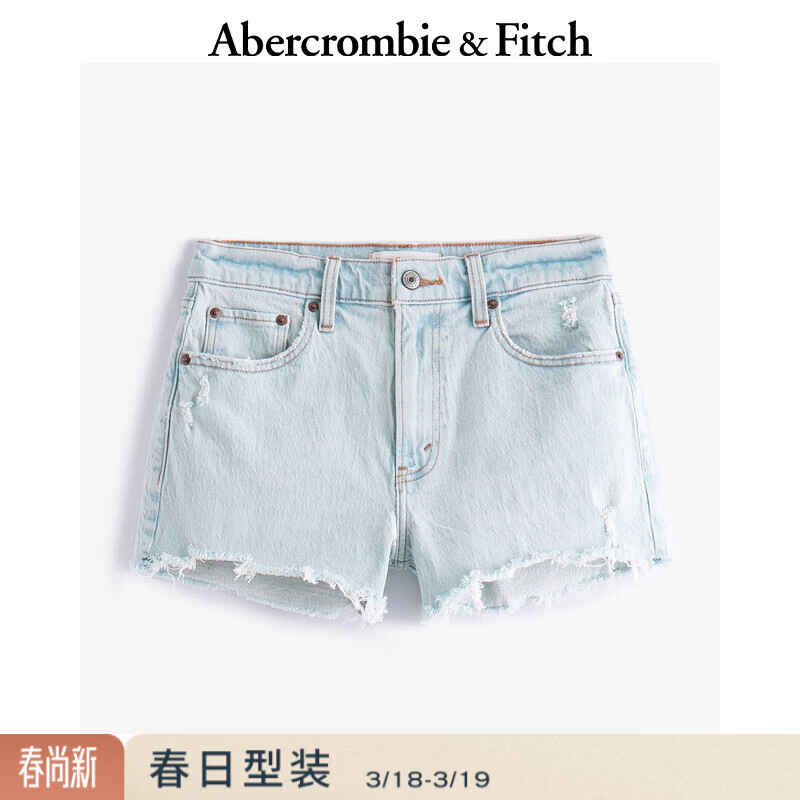 旗舰店Abercrombie & Fitch美式复古气质水洗做旧磨边牛仔裤短裤25夏季女装149-5068 蓝色 27 R (165/68A)标准版