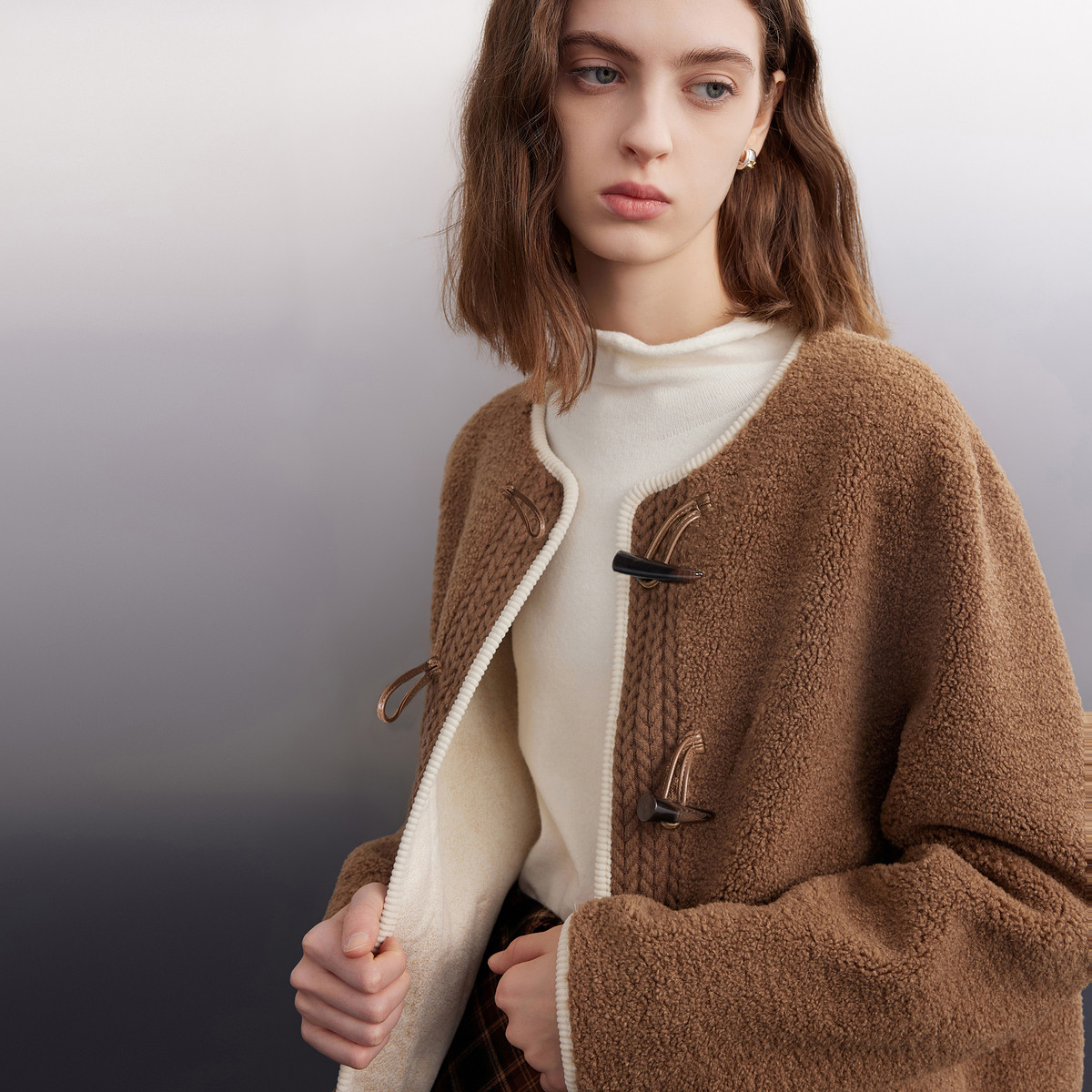 【ibudu系列】2025冬季保暖仿羊羔毛环保皮草圆领外套女