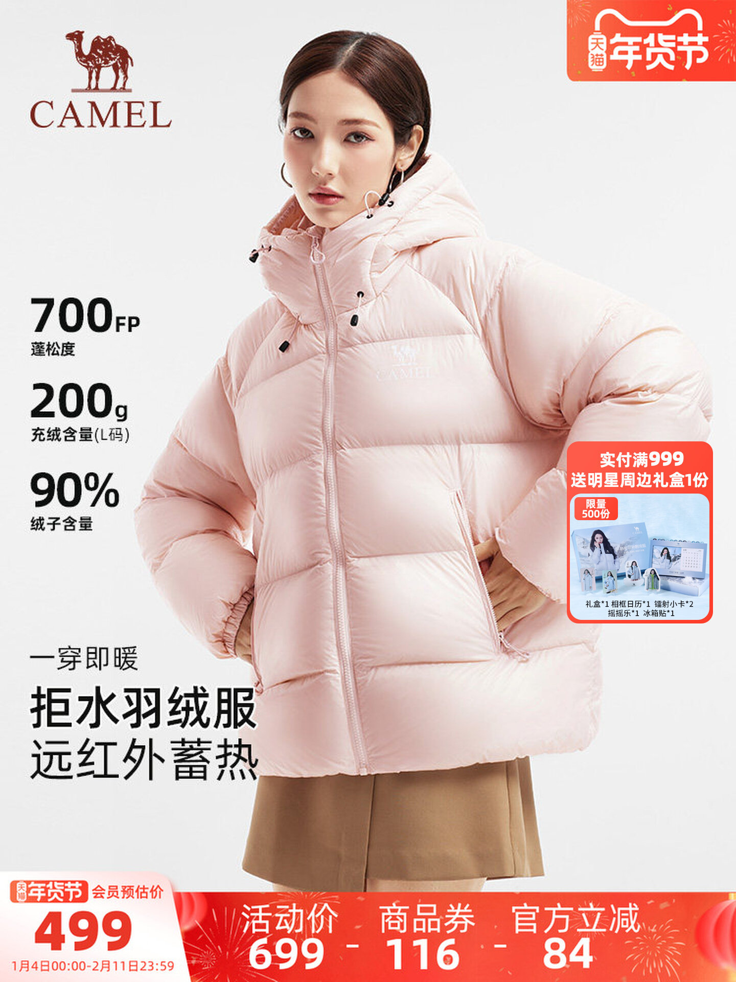 旗舰店【迪丽热巴同款】骆驼羽神PRO鹅绒羽绒服女装冬加厚连帽羽绒外套