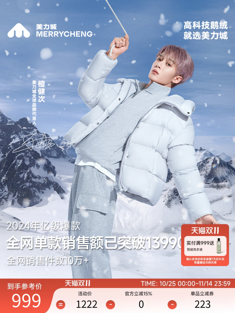 旗舰店【檀健次同款】美力城暖天鹅羽绒服时尚轻暖新款短款鹅绒服外套女