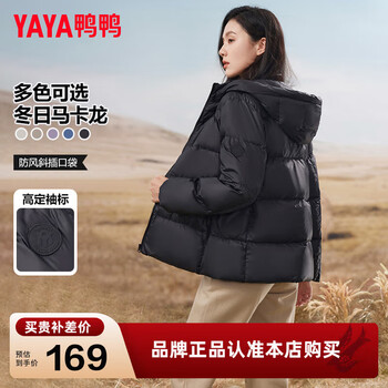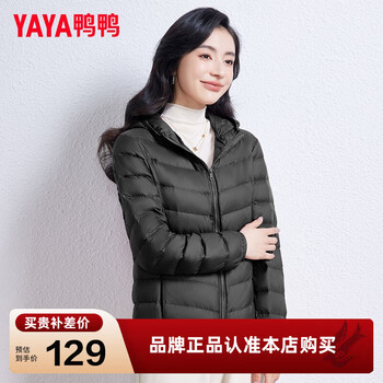 旗舰店鸭鸭(YAYA)佟丽娅同款轻薄羽绒服女冬装短款鸭绒外套轻型薄款女士保暖衣服 黑色 XL/170