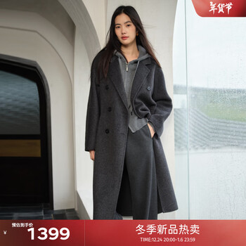 旗舰店伊芙丽【镇店爆款】伊芙丽高智驼绒真丝气质高级双面羊毛大衣女冬季外套 暗灰预售[1月20日]发 M 115-135斤