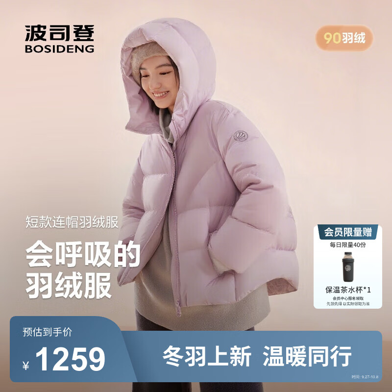 旗舰店波司登(BOSIDENG)25新款羽绒服女短款90绒连帽时尚休闲氧气系列保暖外套B250245242 星雾粉1907 S 160/84A 体重约110-125斤