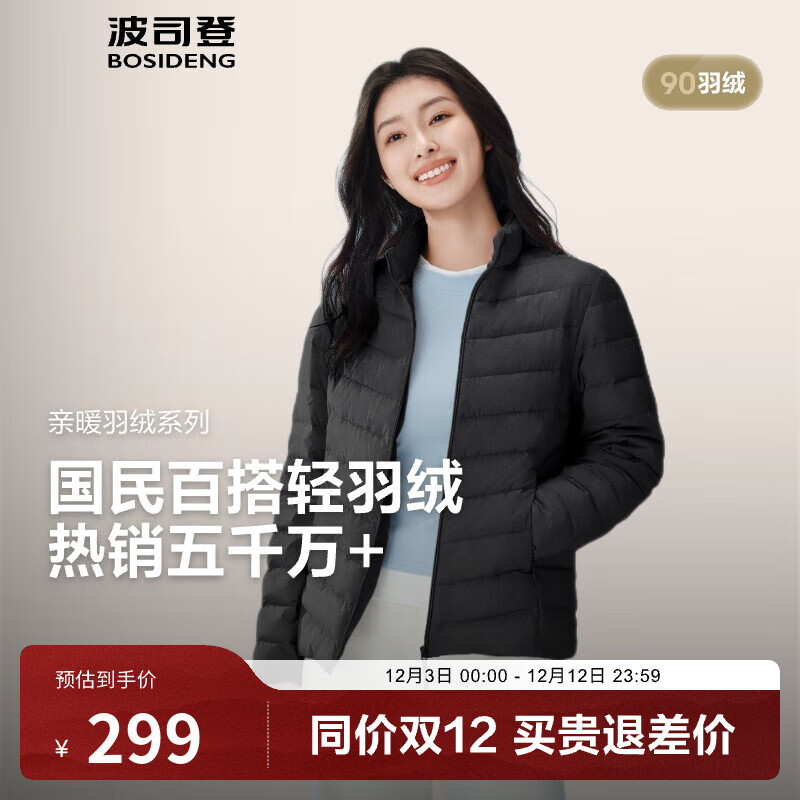 旗舰店波司登(BOSIDENG)25年新款短款轻薄羽绒服女款90绒户外野营登山修身立领羽绒内胆 黑色8056-极简风 L 170/92A 体重约120-130斤