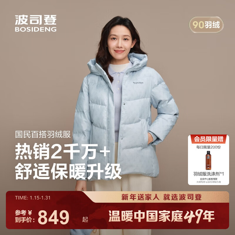 旗舰店波司登(BOSIDENG)25新款冬季羽绒服女款短款连帽90绒新年红骐骥红外套B250245128 【趋势推荐】天蓝爱心印花9W38 -实物偏灰 M 165/88A 体重约110-120斤