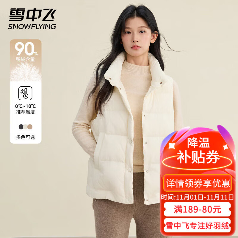 雪中飞女士轻薄羽绒服秋冬百搭休闲大口袋羽绒马甲下摆抽绳保暖御寒背心 米白 S (155)