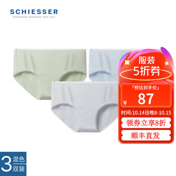 旗舰店舒雅(SCHIESSER)女士Becover系列棉质抗菌平角内裤【3条装】E0/23793T 灰色+绿色+蓝色 M