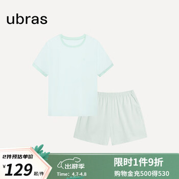 旗舰店ubras24年新品水果系列纯色全棉家居服睡衣女短袖长裤短裤套装情侣款 【短袖短裤】女款-冰蓝绿色 M